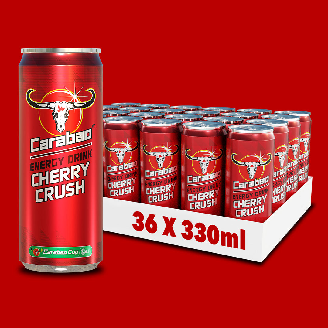 Carabao Energy Drink Cherry Crush is a refreshing and great tasting low calorie energy drink. Enjoy the distinctive taste of this light and refreshingly carbonated energy drink. Half the sugar of traditional energy drinks and only 41 calories per can. Contains taurine, caffeine and B vitamins which replenishes energy* and relieves fatigue*.