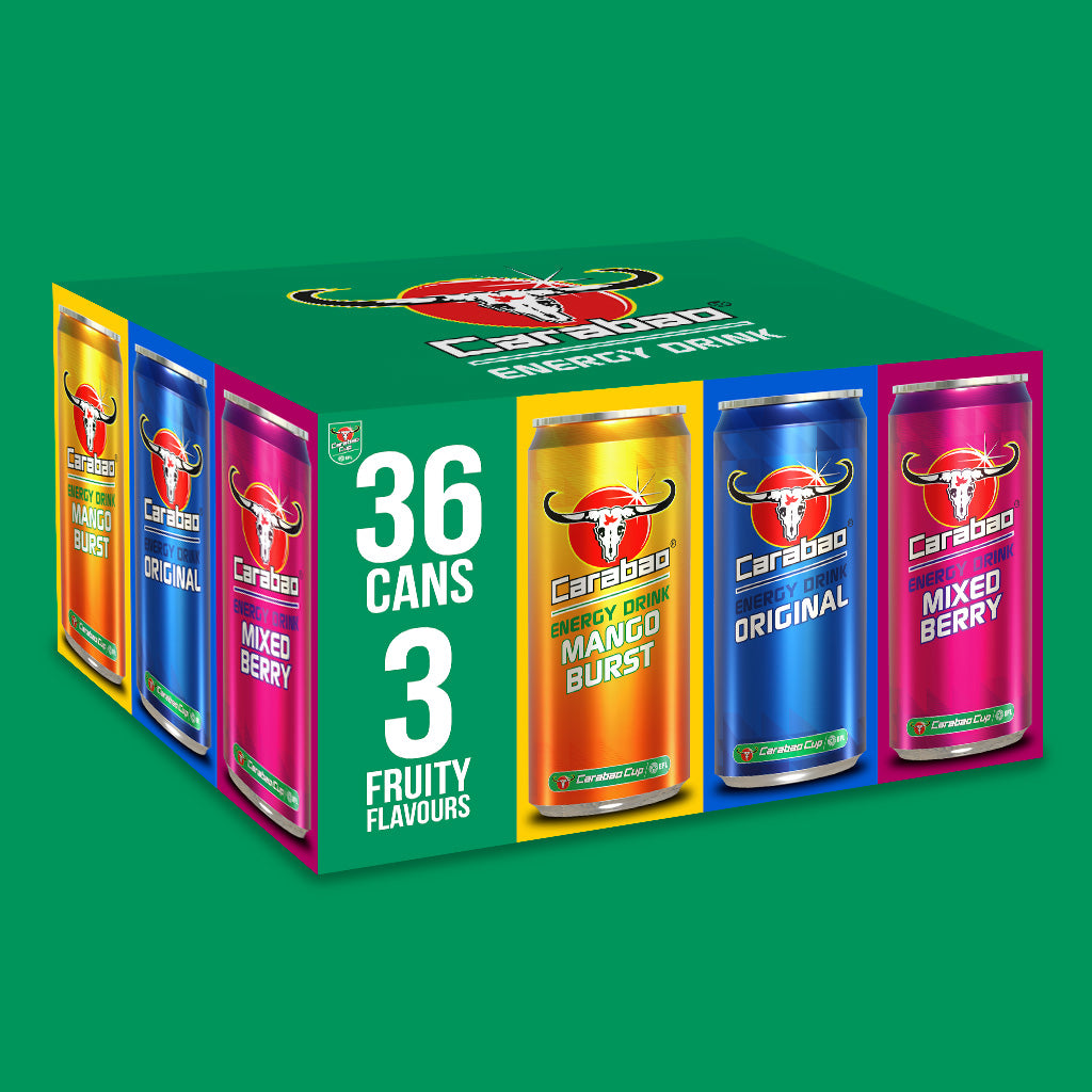 Get 3 Carabao flavours in one pack - all with our blend of caffeine and B vitamins to designed to boost energy without a crash after. 12 x cans of Carabao Energy Drink in each of the following flavours: Original, Mango and Mixed Berry. Enjoy our deliciously light and sparkling energy drink bubbling with natural great tasting flavours. Half the sugar of traditional energy drinks from only 41 calories per can. Contains taurine, caffeine and B vitamins which replenishes energy* and relieves fatigue*. Comes in 36 pack of 330ml each.