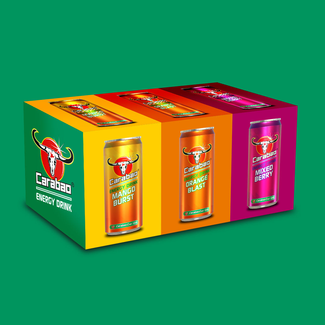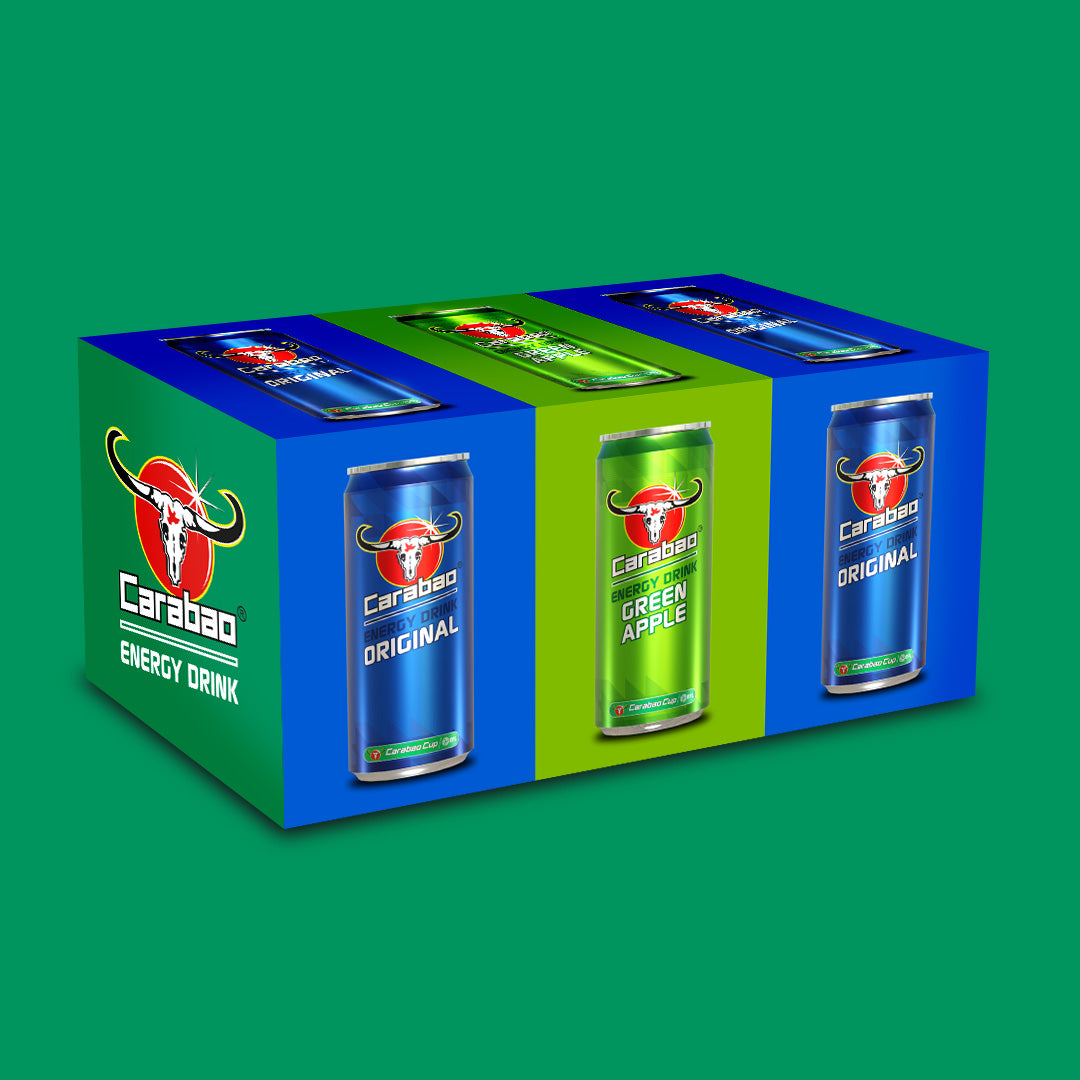 Get 3 tasty Carabao flavours in one pack. Choose three great tasting fruity flavours and enjoy a combo of deliciously light and sparkling energy drink. Half the sugar of traditional energy drinks, from only 41 calories per can. Choose from Green Apple, Mixed Berry, Mango Burst and Original energy flavours. Contains taurine, caffeine and B vitamins which replenishes energy* and relieves fatigue*. Comes in 36 pack of 330 ml each.