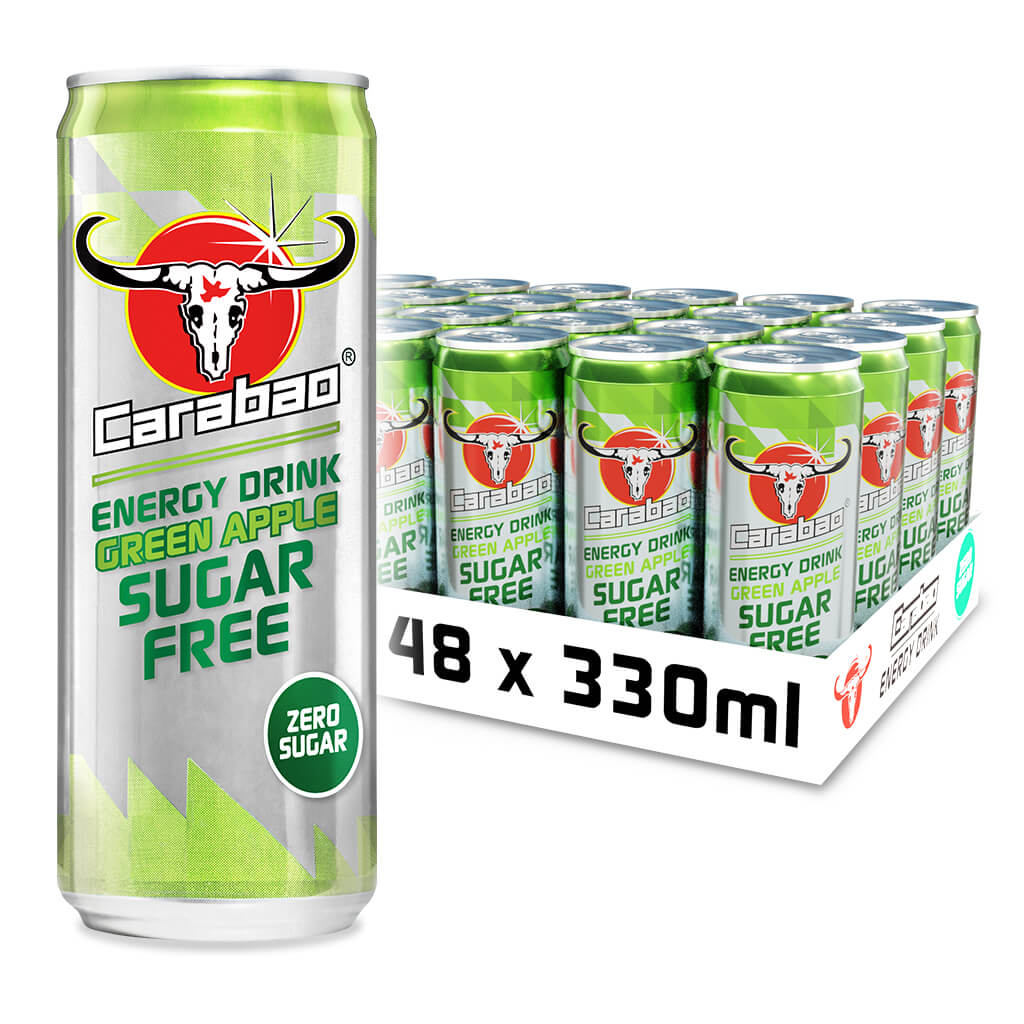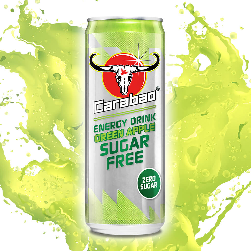 Carabao Energy Drink Green Apple Sugar Free is a refreshing and great tasting zero sugar energy drink. Enjoy our deliciously light and sparkling energy drink bubbling with natural apple flavours. Only 4 calories per can. Contains taurine, caffeine and B vitamins which replenishes energy* and relieves fatigue*.